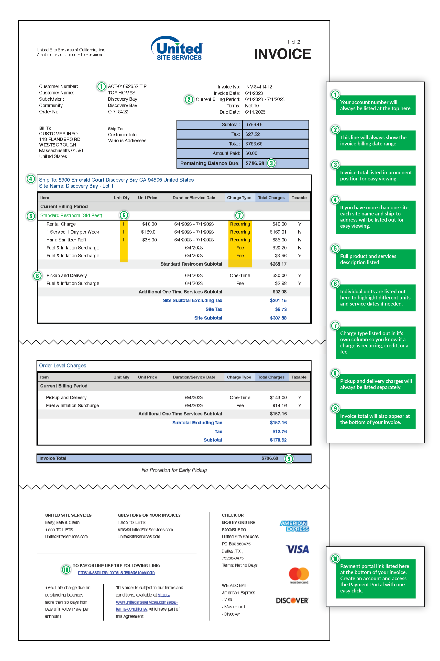 At United Site Services (USS), we’re committed to transforming the way we do business to better support you and deliver on our promise of an Easy, Safe, and Clean experience. We understand that time is valuable, and convenience is key, which is why we’re dedicated to providing you with the fastest, safest way to view and pay your invoices for all your temporary site services. We continuously strive to improve our billing process to make it as efficient and user-friendly as possible for you.