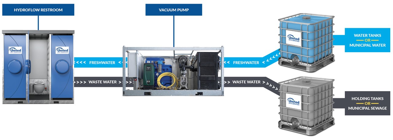 Hydroflow™ Restrooms from United Site Services are the ideal solution for any site requiring temporary sanitation. The closed drainage system creates an even more hygienic environment, so you can always count on a clean and fresh experience, even if the water supply is limited. To connect with one of our Hydroflow customer care professionals, call 1-800-TOILETS or click here to complete a quick form.