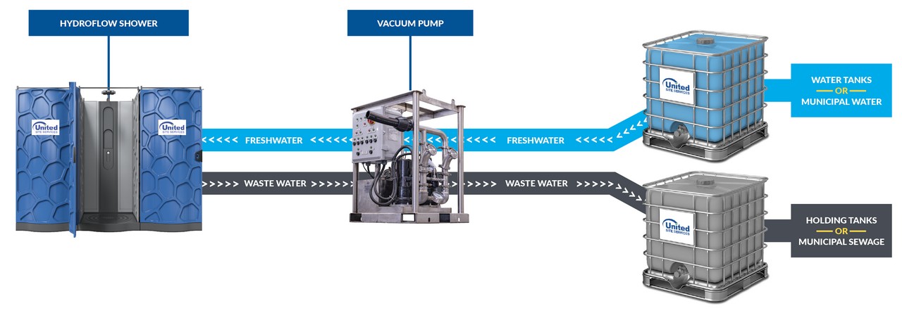 This high-capacity modular Hydroflow™ Shower system is best for large events and sites. These showers provide hot or cold water, are easy to transport, easy to set up and can be configured in a wide variety of combinations to fit your needs. Plus, it saves on fresh water while providing the cleanest experience for every person. It’s never been easier to provide an elevated sanitation experience for a crowd.